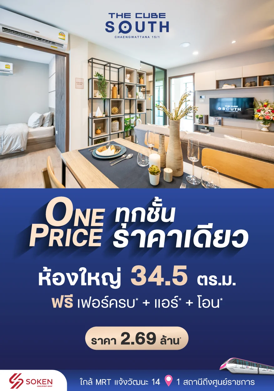 เดอะคิวบ์ เซาท์ แจ้งวัฒนะ 15/1 คอนโด Low-Rise สไตล์รีสอร์ท ความสูง 8 ชั้น 4 อาคาร พื้นที่โครงการ 3 ไร่ 31 ตร.วา. โดยประมาณ จำนวนห้อง 391 ยูนิต มีห้องพักให้เลือกแบบ 1 Bedroom, 1 Bedroom Plus และ 2 Bedrooms ขนาดเริ่มต้น 25.5-43.00 ตร.ม. พร้อมสิ่งอำนวยความสะดวกพิเศษสุดทุกรูปแบบและส่วนกลางลอยฟ้าบนชั้น 8 ทั้ง 4 อาคาร ที่สามารถทำกิจกรรมได้ตลอดทั้งวัน เชื่อมต่อเข้า-ออกเมืองได้ง่ายด้วยทางพิเศษศรีรัช และ ดอนเมืองโทลล์เวย์ ใกล้ รพ.มงกุฏวัฒนะ, ศูนย์ราชการแจ้งวัฒนะ, บิ๊กซี แจ้งวัฒนะ